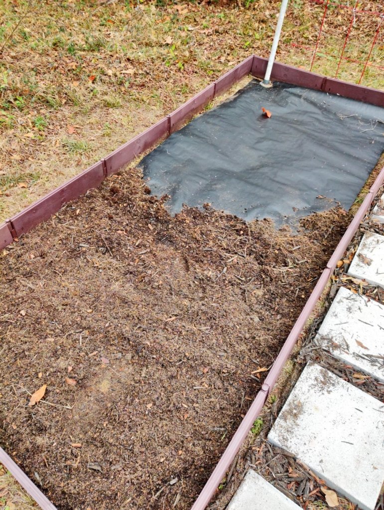 In your garden bed lay down your soil in your desired area. Make sure you have enough soil to covered the whole thing. You can see in the picture (below) that I covered my first bed with soil, but I ran out of soil for my other bed. I still need to buy some soil to make sure that everything is covered but also make sure that everything is full to a certain desire fullness.