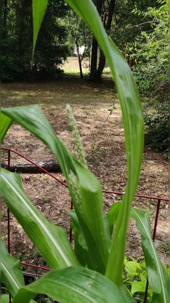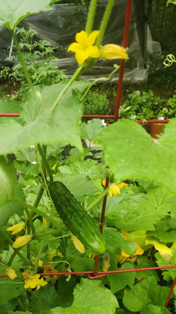 I wanted to update you guys on what’s going on in my garden. So back in April we had a bad rain storm come through and I made up Green House I put together flew into the woods. I was very disappointed in the fact that all of my hard work went flying. You can see in some of the photos that I have posted that the greenhouse is not over my garden, but instead in the woods. I know part of it has to due with the fact that I did not put it down properly to hold it in its place so when we get really bad rain storms and wind that it can withhold that pressure.