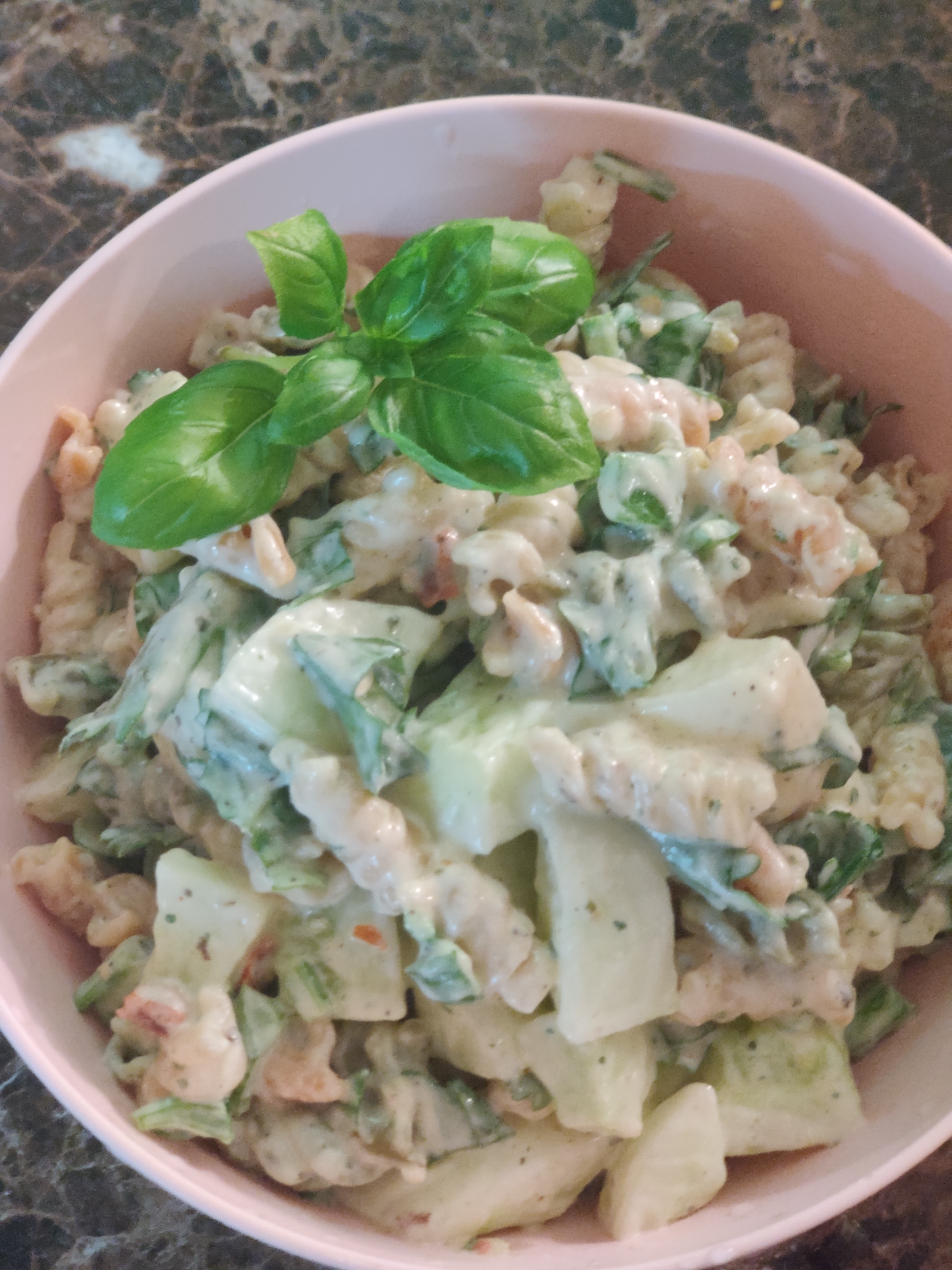 • After pasta has cook, drain the water and let cool about 5 minutes and mix all of your ingredients together to form your pasta salad. (If you need to add a little bit more mayo you can do so.)