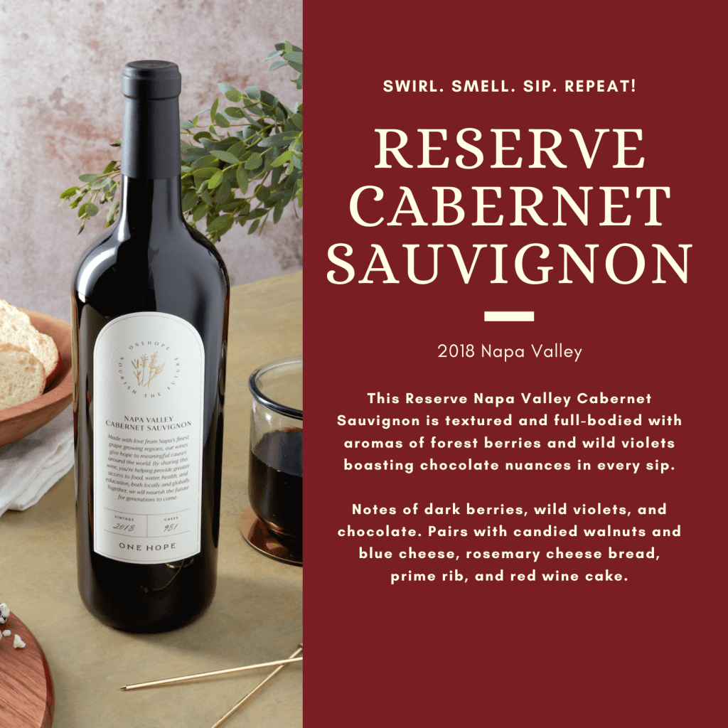 This Reserve Napa Valley Cabernet Sauvignon is textured and full-bodied with aromas of forest berries and wild violets boasting chocolate nuances in every sip.