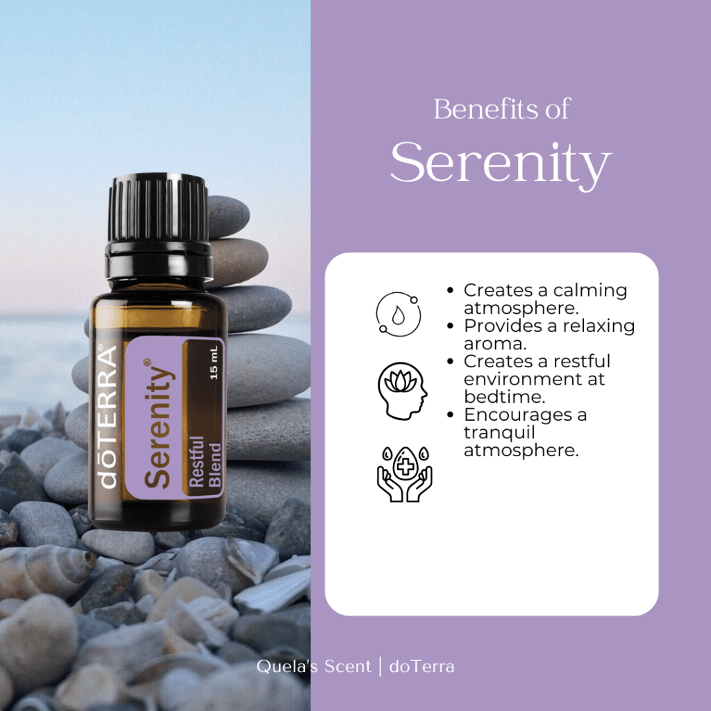The soothing, grounding aroma of doTERRA Serenity Restful Blend is a magical mix of CPTG Certified Pure Tested Grade® Lavender, Cedarwood, Coriander, Ylang Ylang, Marjoram, Roman Chamomile, Vetiver, and Sandalwood essential oils, with hints of Tonka Bean and Vanilla Absolute. Apply one to two drops to the hands and inhale throughout the day as you face life’s daily stressors, diffuse at night as a part of an effective sleep practice, or leverage the Lavender in the blend to provide a calming aroma for a restless baby or child. You can also diffuse doTERRA Serenity Restful Blend while taking doTERRA Serenity Restful Complex Softgels to help you find sweet dreams in a good night’s sleep.*