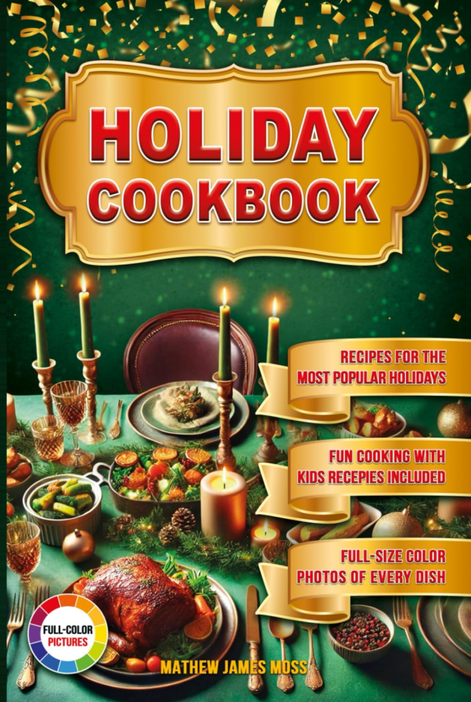 Discover a comprehensive holiday cookbook featuring recipes for Thanksgiving, Christmas, Halloween, Valentine’s Day, and Easter, all accompanied by full-size color photos. This guide not only offers easy step-by-step instructions for festive meals but also includes a diverse array of recipes, making every holiday celebration unforgettable.